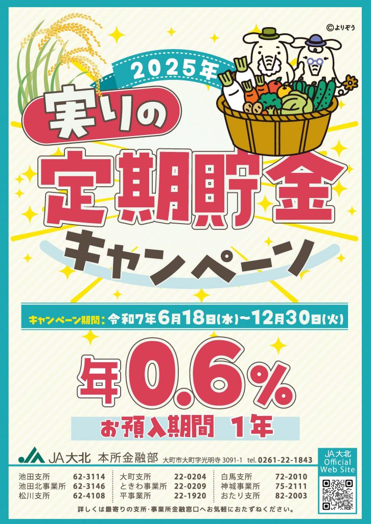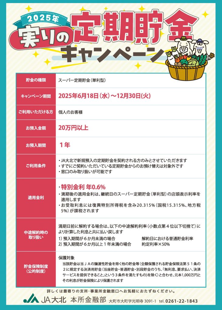 JA大北では、6月18日(水)から「2025年 実りの定期貯金」を実施しています!