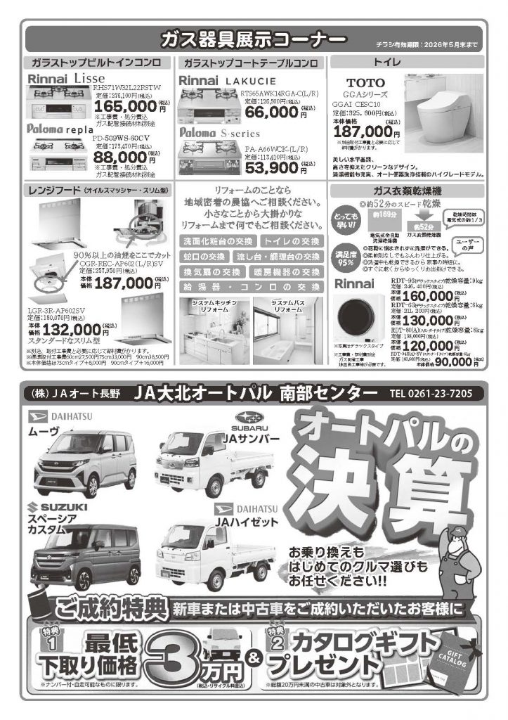 - JA大北南部工機燃料センター(TEL:0261-22-2518)