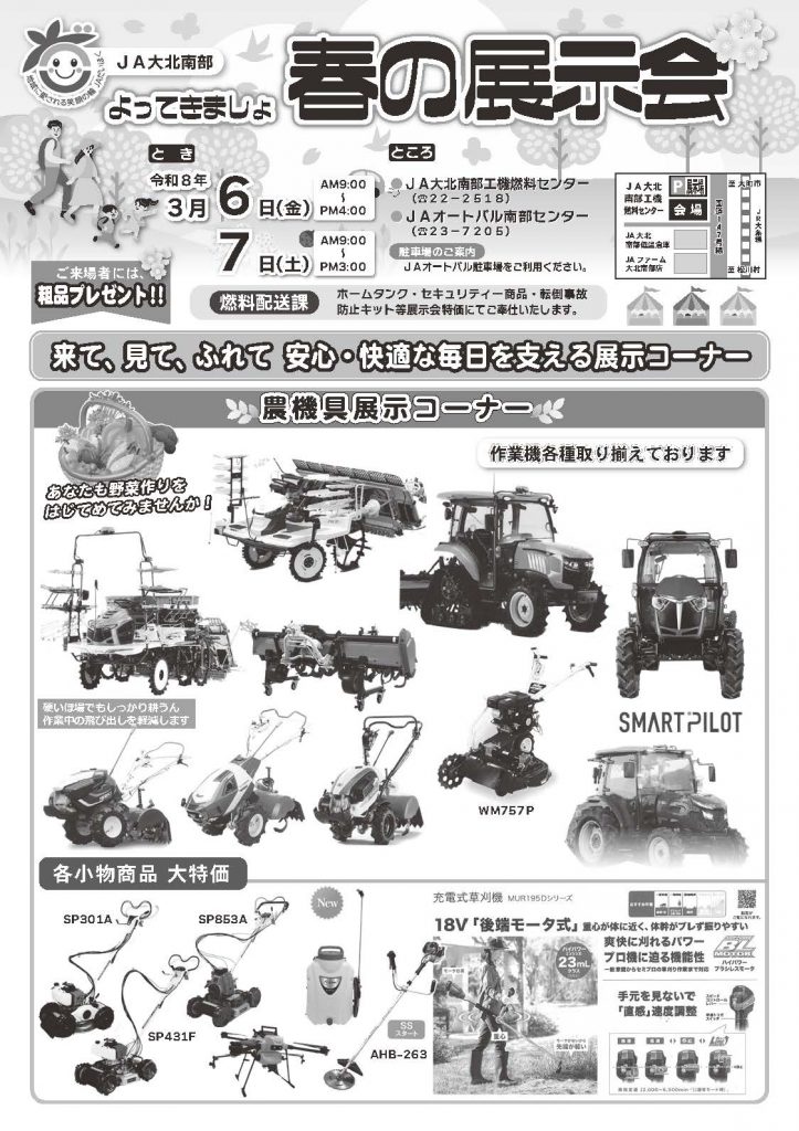 「JA大北南部 よってきましょ 春の展示会」開催のお知らせ
