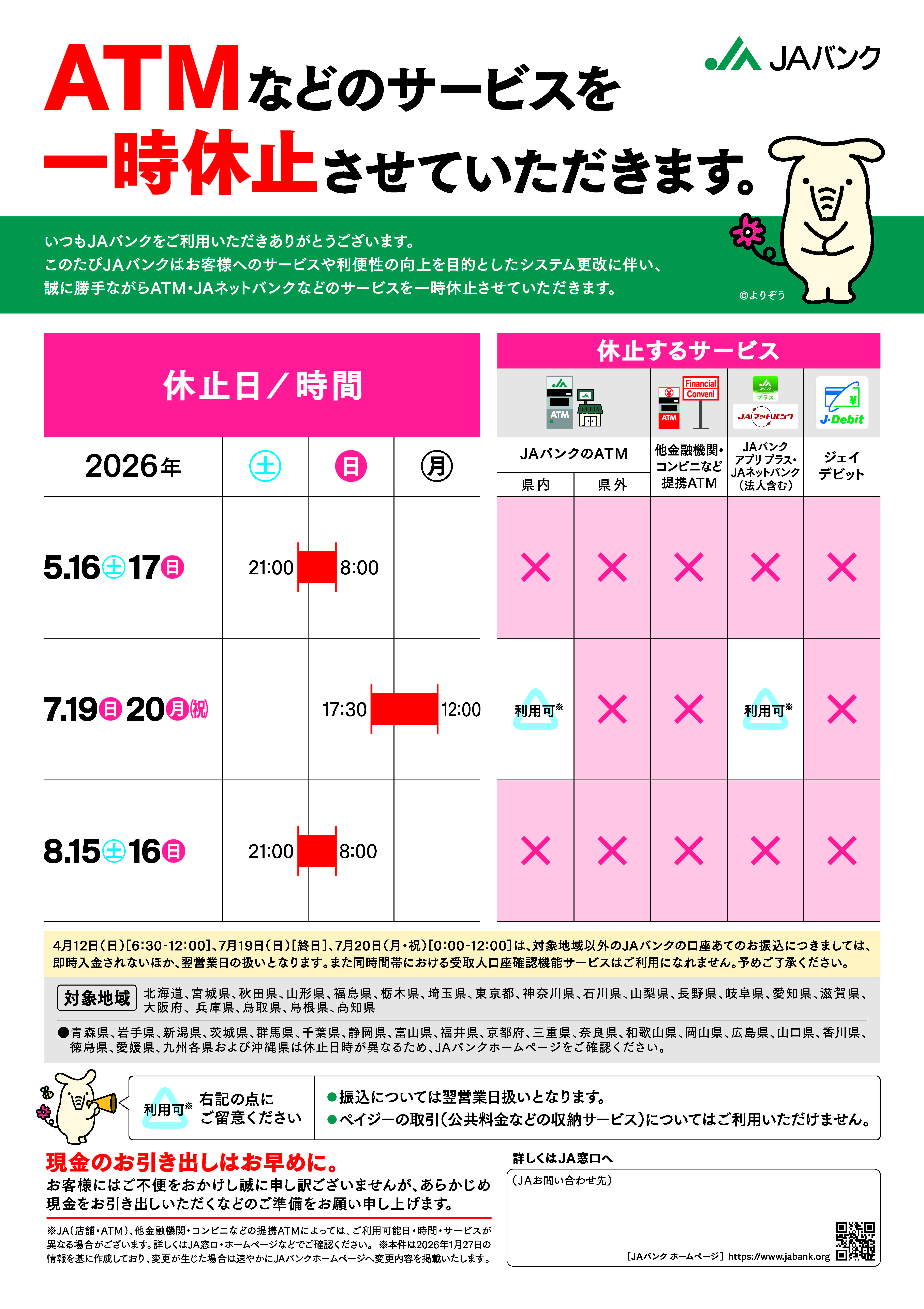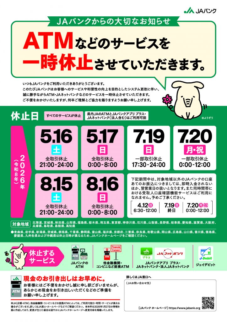 日頃よりJA大北ならびに長野県JAバンクをご利用いただき誠にありがとうございます。
